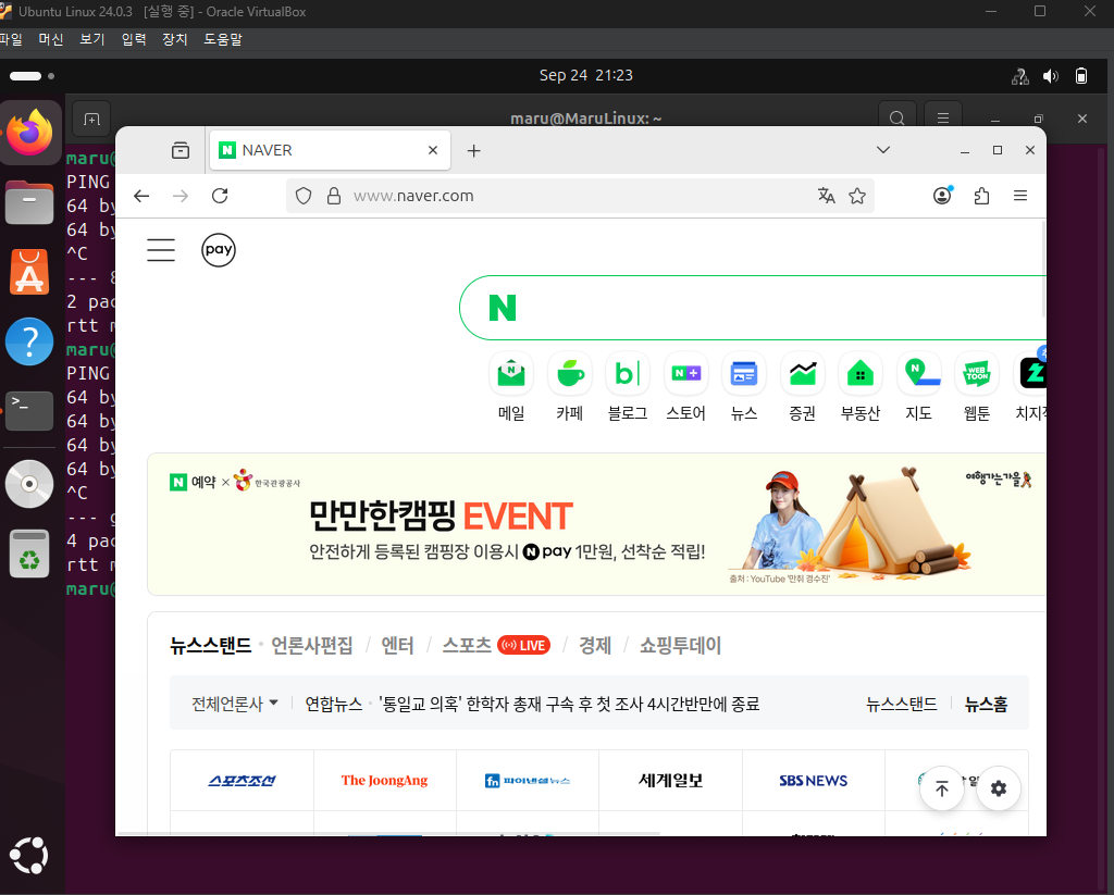 다시 ping google.com 명령어를 입력해보면 정상적으로 송신된다.